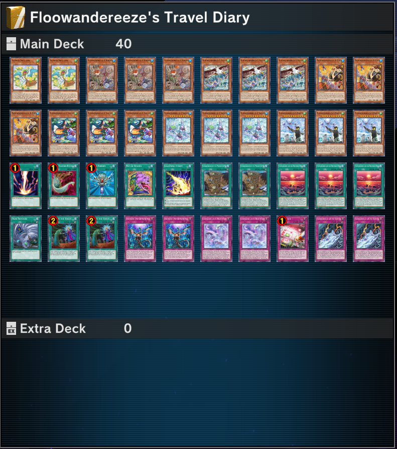 “A “Floowandereeze” Deck that uses Normal Summoning as its core strategy. It can Summon via the effect of “Floowandereeze and the Magnificent Map” or even Summon during the opponent’s turn with the effect of “Floowandereeze and the Dreaming town.” Bring out the full potential of “Floowandereeze” monsters and Summon your key cards like “Floowandereeze & Snowl.”