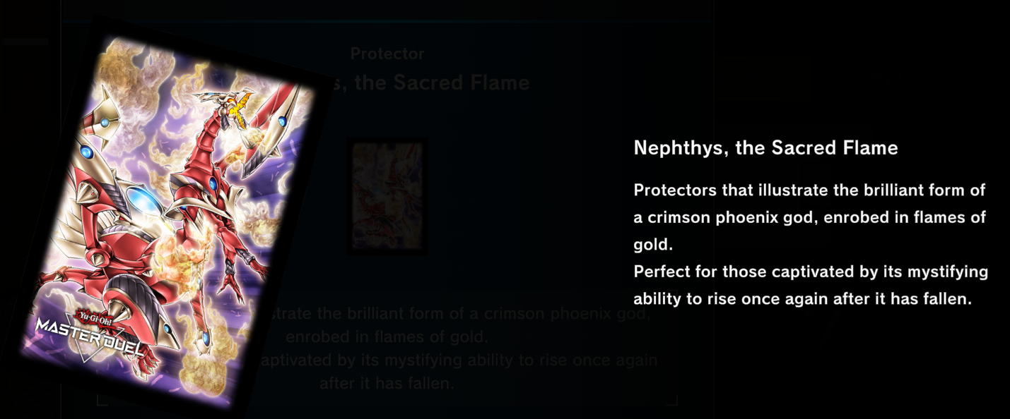 A set of “Nephthys, the Sacred Flame” protectors/sleeves