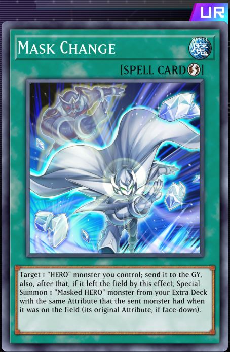 Until May 7th, 12:59 JST you can obtain alternative artworks of Destiny HERO – Plasma, Masked HERO Dark Law and Mask Change (this one upgraded to UR rarity) by pulling them from packs. The Secret Packs Shrouded Heroes and Transfigured Heroes will be unlocked until that date, and during this time, you can obtain 1 free pack from them.