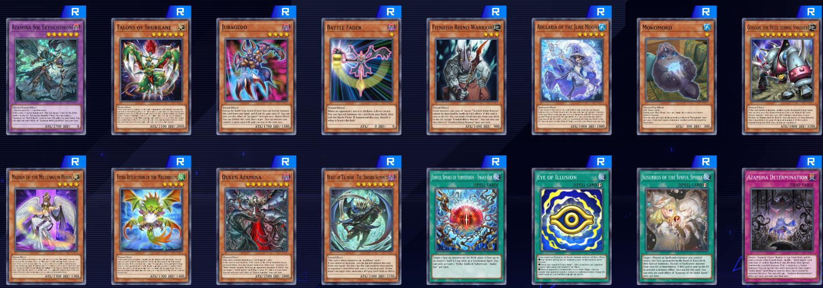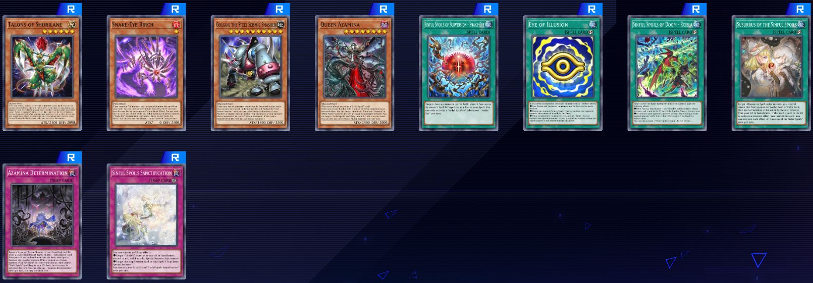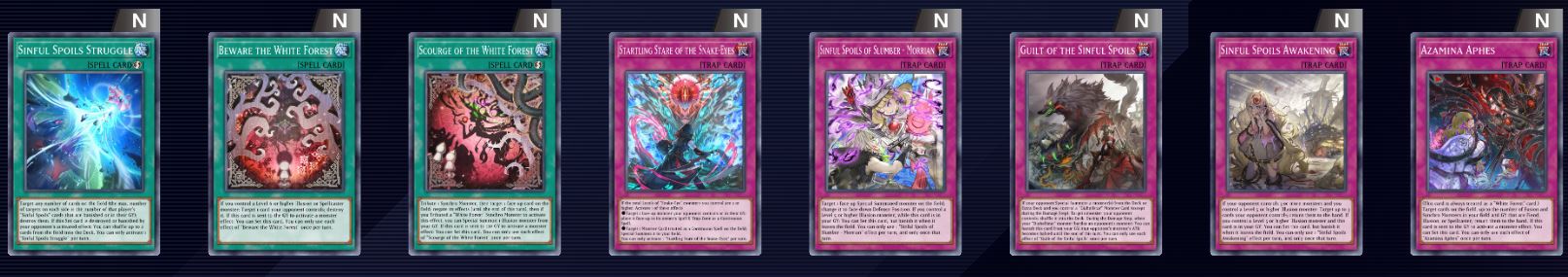 “Deep within the witch’s blackened forest, the red fruit of sin sits ripe and waiting. The cihldren of humankind can absolve themselves of their sins by becoming “Sinful Spoils”. The “Azamina” archetype features the unique ability to send Spell/Trap Cards to the Graveyard as if they were materials in order to call forth Fusion Monsters. This makes it easy to uitilize alongside other strategies that rely on Spell/Trap Cards, so try testing out a variety of different combinations.”