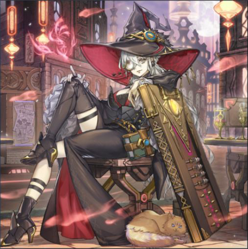 “The alternate art version of UR “Diabellstar the Black Witch” is available for a limited time! The mysterious storyteller who describes the adventures of a certain witch is depicted in stunning artwork!”