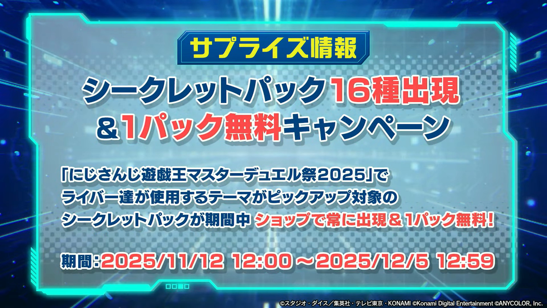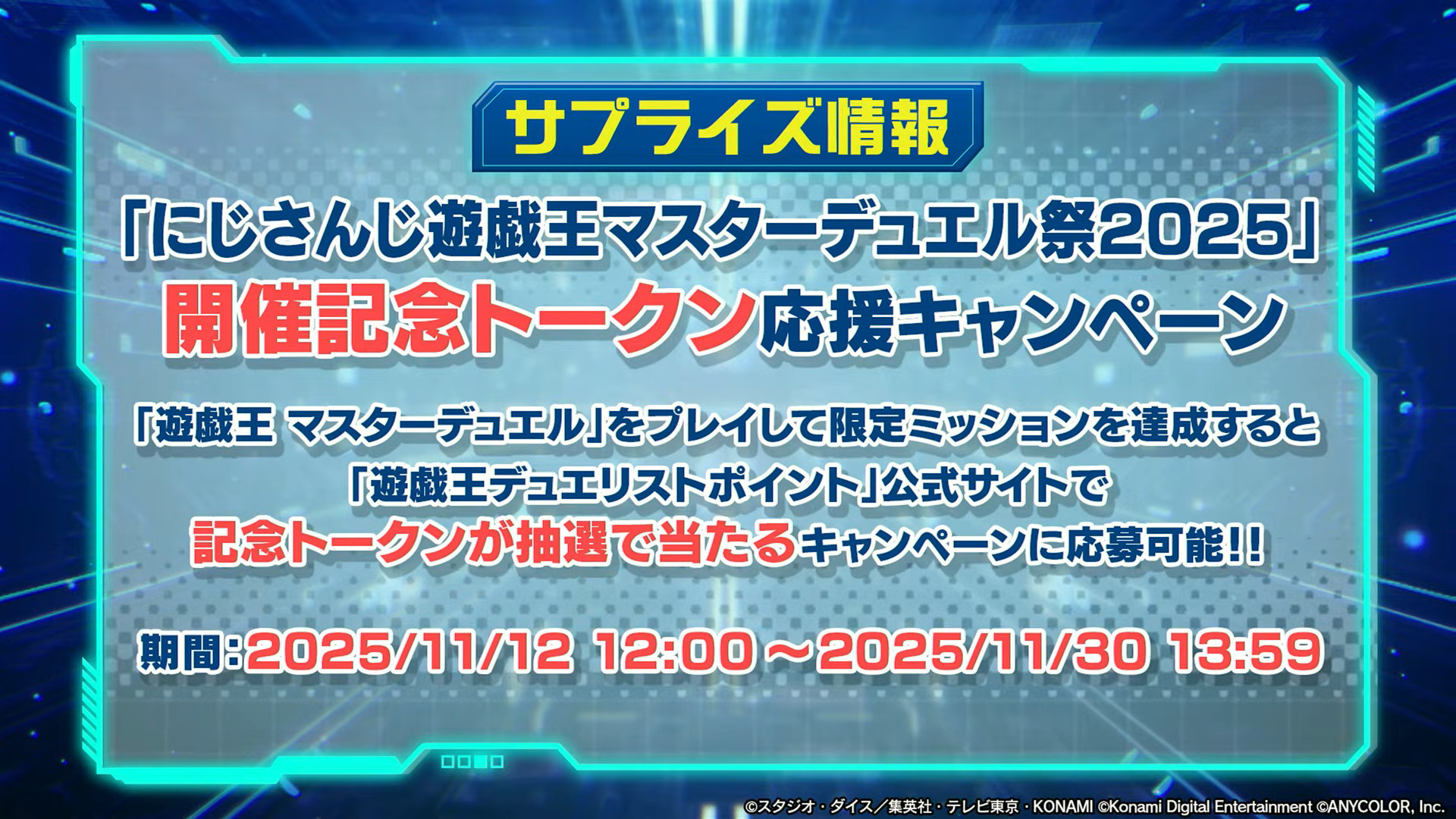 In order to celebrate the Niji Yu-Gi-Oh! Festival 2025, a special campaign will be held, starting on November 12th, 12 PM (JST)