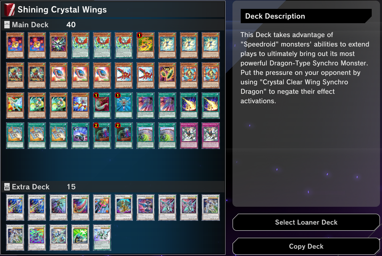 Three loaner Decks themed after Speedroids, Fleur/Noble Knight and Majestic Stardust will be available: