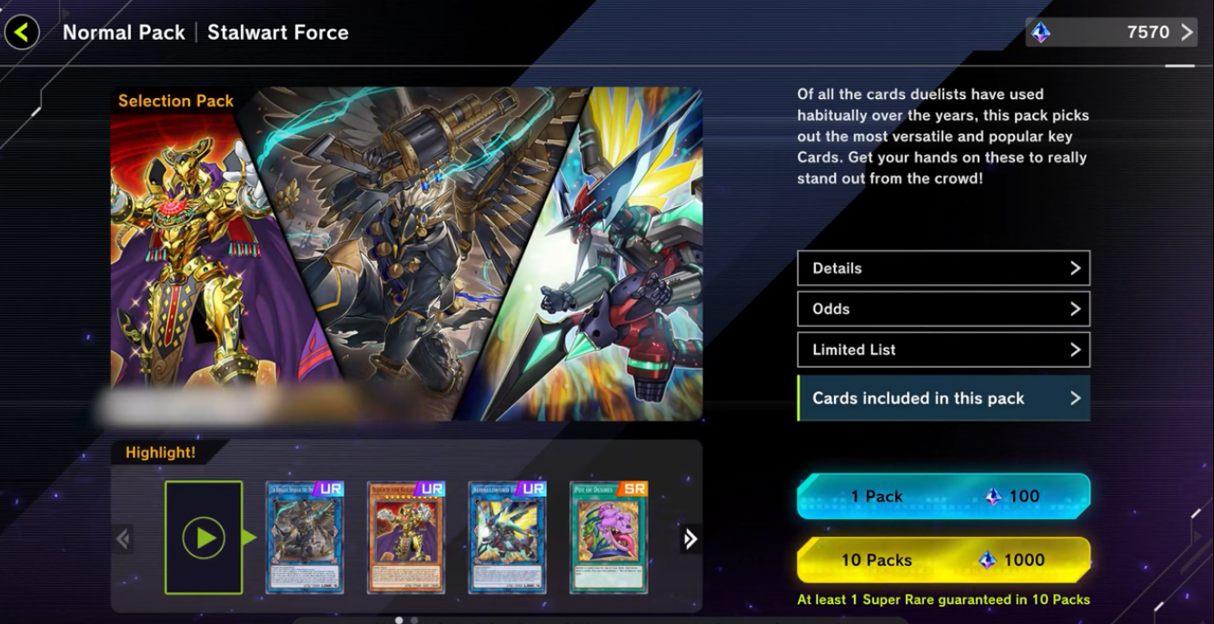 One of the first things we see is that there’s a new pack called “Stalwalt Force”, which costs the same as the Master Pack. There seems to be different categories of packs including a “Bonus Pack” and an unknown category.