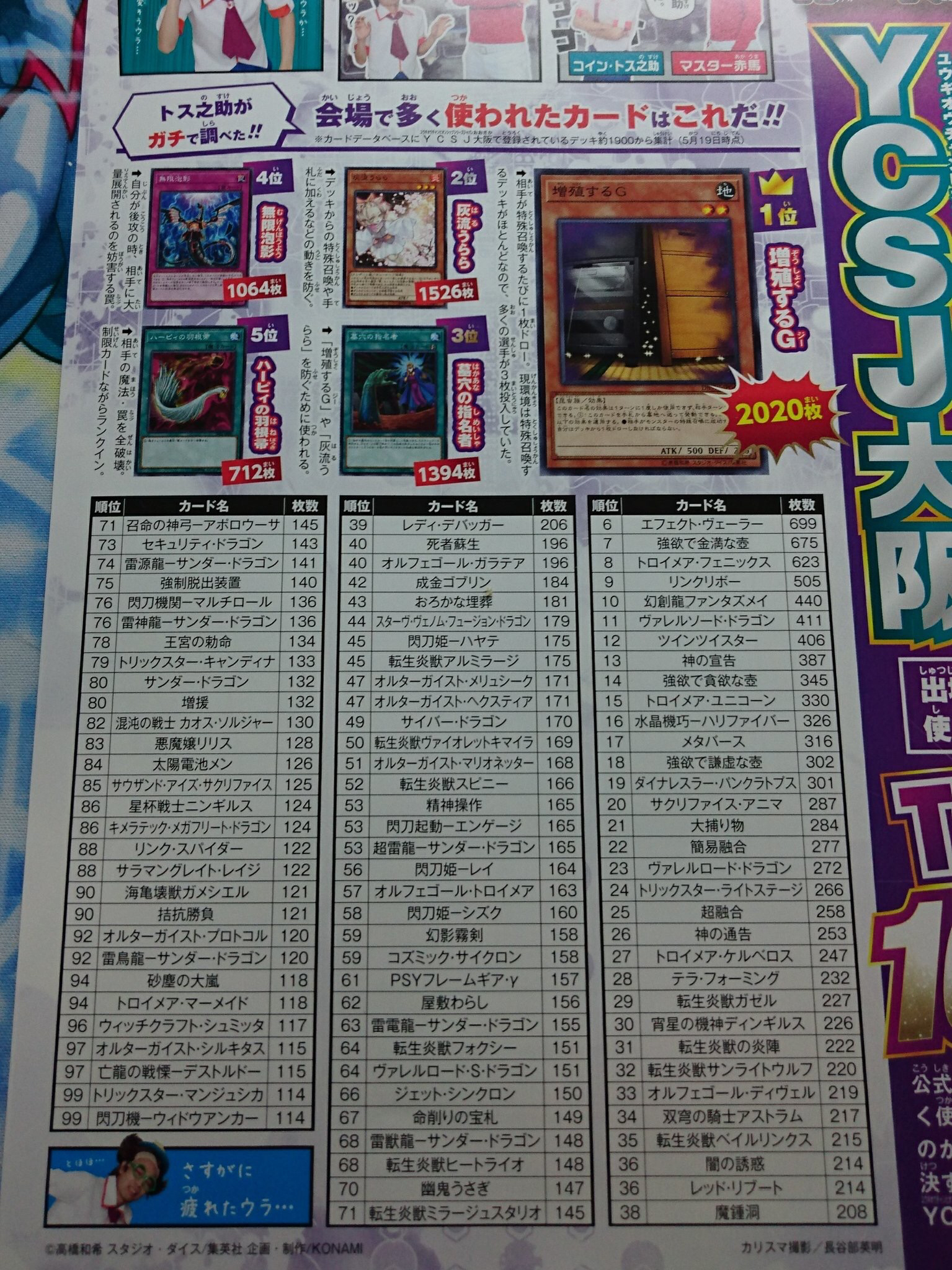 Top 99 Most Used Cards at Yu-Gi-Oh! Chapionship Series Japan Osaka 2019