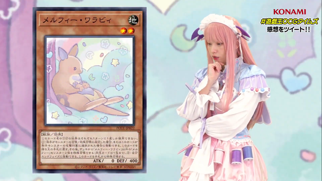 (1) If your opponent Normal or Special Summons a monster(s), OR if this card is targeted for an attack by an opponent’s monster: You can return this card to the hand, then you can Special Summon 2 “Melffy” monsters with different names from each other from your Deck, except “Melffy Wallaby”.