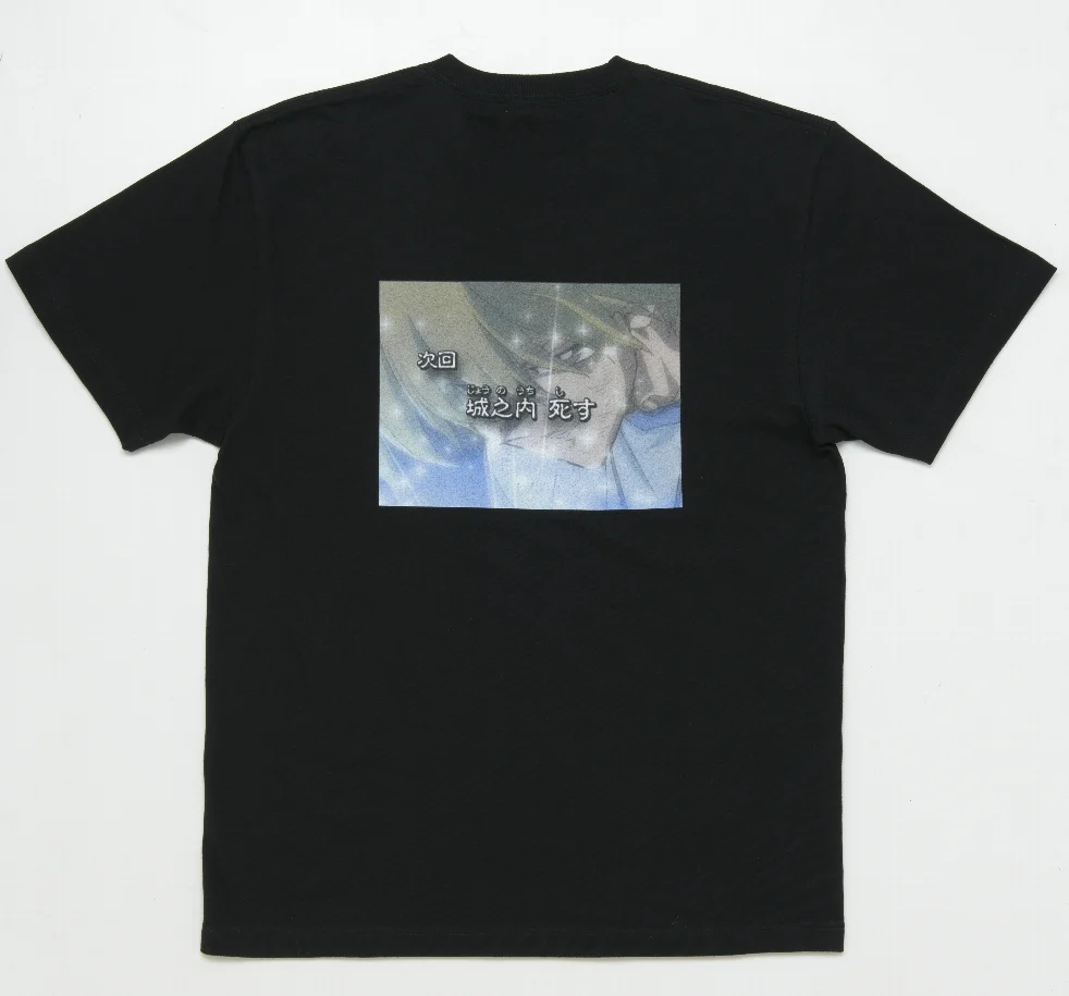 Note: This design features a capture of the episode preview for episode 128 of Yu-Gi-Oh! Duel Monsters. The 3+ episode Duel between Katsuya Jounouchi/Joey Wheeler and Yami Marik during the semi-finals of the Battle City tournament was simply called “The Darkness Returns Part #” in the dub, but in the original broadcast, each of these episodes had a unique title. At the very last turn of the Duel, after receiving a brutal attack by The Winged Dragon of Ra, the episode ends in a cliffhanger where it is unclear whether Joey can possibly continue playing or if he’s even alive. The episode preview reinforces this uncertainty, but then we’re greeted with an ominous title for episode 128: “JOUNOUCHI DIES”.