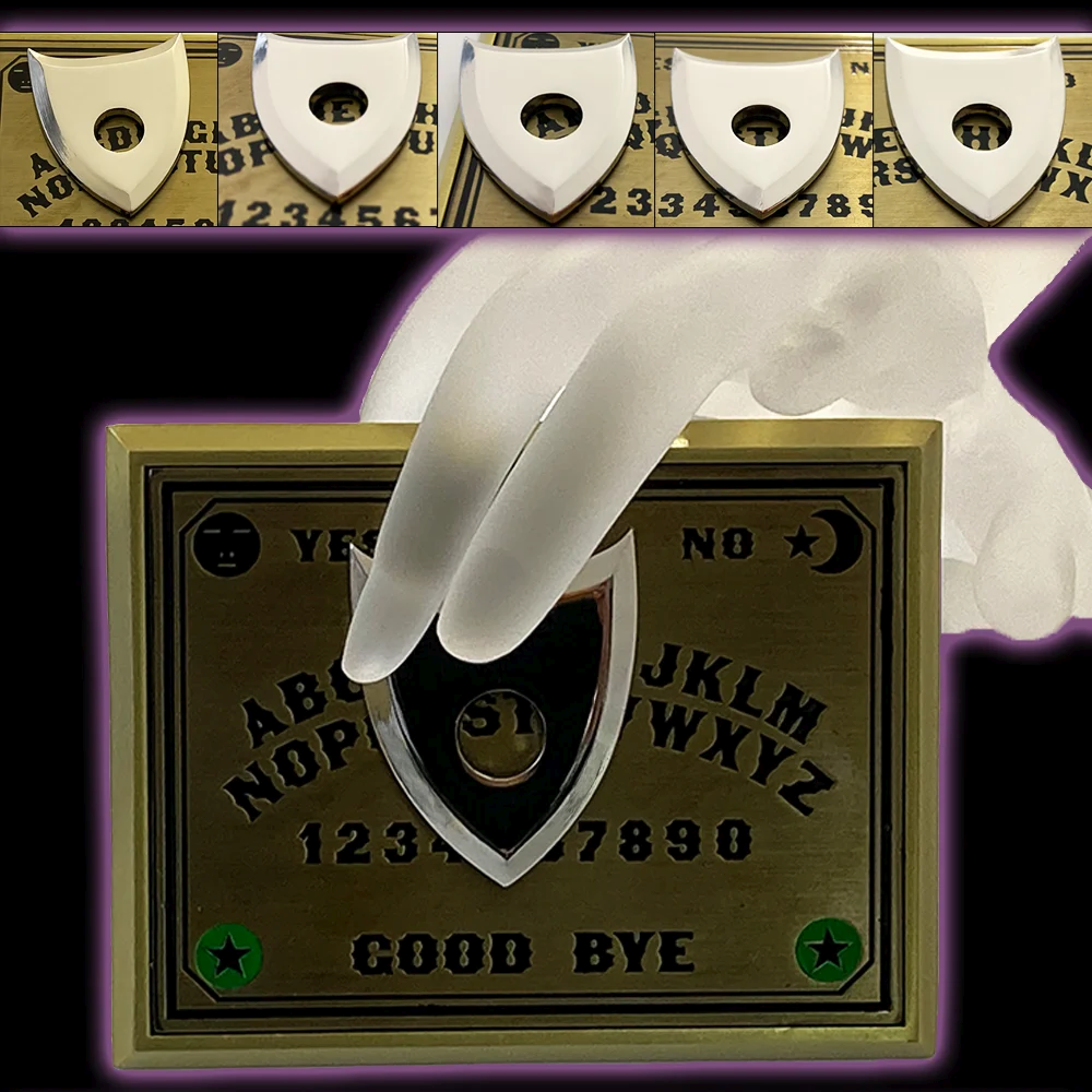 An metal magnet item based on the card “Destiny Board” used by Yami Bakura. Maintaining the concept of the Ouija Board esque “Destiny Board”, making it a quality item! Since the silver piece is a magnet, you can move it around.