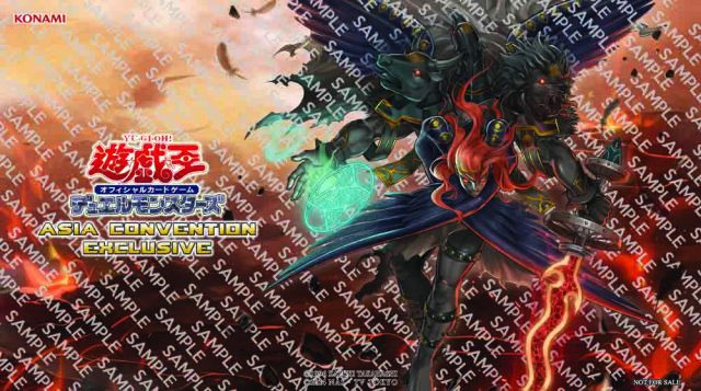 The Door Prize is 12 Packs for a team plus this Playmat of “Cherubini, Black Angel of the Burning Abyss”: