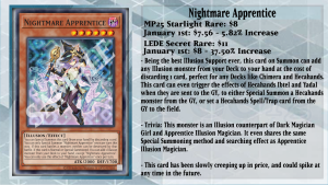 Finally, Nightmare Apprentice is one of the best cards to have for any Illusion theme, as it can Special Summon itself from the hand by discarding 1 card, and if it is Normal or Special Summoned, you can add any Illusion monster from your Deck to your hand. This card can search for both Hecahands Ibtel or Yadal, depending on the situation you’re in. If you need a Hecahands monster on the field or to search for a Spell/Trap for further plays, Fusion Summon Hecahands Xeno with Hecahands Tartaros, or grab one of the two Counter Traps that Deck holds for your End Board. Apprentice being a Level 6 is also great since you can pair it with an opponent’s monster, Hecahands Ibtel, or Yadal to Xyz Summon Dhampir Vampire Sheridan or use Apprentice with a Hecahands monster to Fusion Summon Hecahands Jauzah.