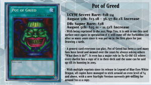 DISCLAIMER: There is currently no way of knowing what Konami has planned for the next Forbidden & Limited List; this article is fully looking at current market data, reprints, and future support for themes related to some of the cards mentioned in this article.