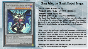 What will this mean for the future of Yu-Gi-Oh!? Well… nothing really, as the next Forbidden & Limited List can come out over the next week, at the next YCS, or even in October. It’s only a matter of time until the next list will drop, but I don’t see it coming out until YCS Anaheim, California.
