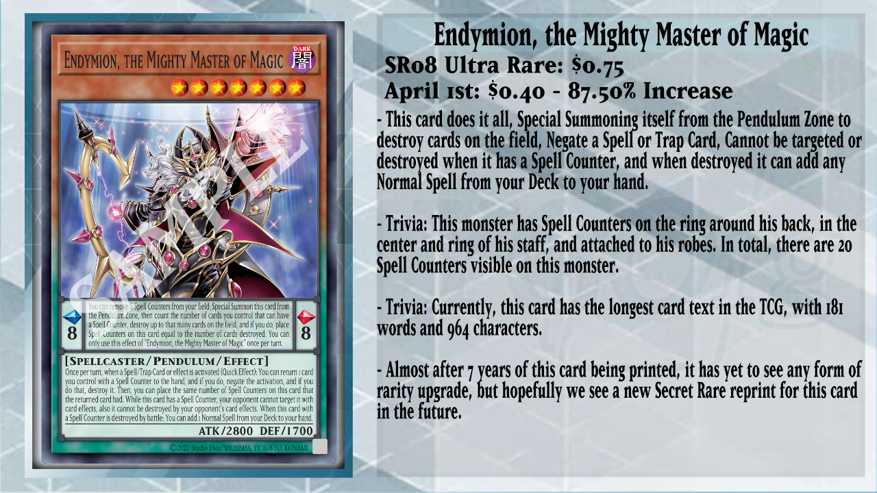 It’s heavily hinted, since Invoked, Magistus, and Witchcrafter saw brand-new support and with the image they gave for the commercial for the next Chronicle Episode, that each character will see an episode and the first one happens to focus on Aleister the Invoker. But it is an easy guess that Endymion will also see a new wave of support in the future. Everyone laughs and jokes about Endymion, the Mighty Master of Magic, since it has the longest card text in this game, but it is an extremely powerful boss monster for his own theme. With only being printed in Structure Deck: Order of the Spellcaster, it’s become slightly harder to find on the shelves after 7 years of being out of print, but to break down this monster easily, here’s some bullet points of what it does.