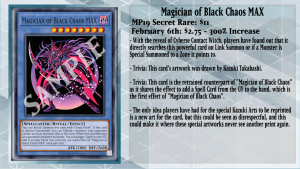Another card that is being massively hyped up is the legendary Magician of Black Chaos MAX, due to the reveal of Cyberse Contract Witch. After all, players have always had a fascination with stopping their opponent from playing the game. If Contract Witch is Link Summoned or a monster is Special Summoned to a Zone Witch points to, you can add any Ritual Monster from your Deck to your hand by sending 1 Spell from your hand or face-up field. Not only is this perfect for any Ritual Deck like Nekroz, Megalith, or Mitsurugi, but you can also just add generic cards like Sauravis, the Ancient and Ascended for targeting protection, or in this case, Magician of Black Chaos MAX to stop your opponent from activating monster effects until the end of that turn. While you do have to Tribute a monster to use this effect, Magician of Black Chaos MAX can simply Tribute itself for it. This is even more problematic when paired with a card like Dyna Mondo, as Dyna can Tribute itself to revive Magician of Black Chaos MAX to then trigger Chaos MAX’s effect once more. Even then, you can also just Ritual Summon it during the opponent’s turn with Secrets of Dark Magic. This legendary Ritual Monster was only printed once in both the OCG and TCG from the 2019 Mega Tins in Prismatic Secret Rare and in the 20th Anniversary Legendary Collection in Secret Rare and 20th Secret Rare for the OCG. Maybe one day, we can see a reprint of all the Kaz Arts… but maybe we will never see a new print for these special cards again.