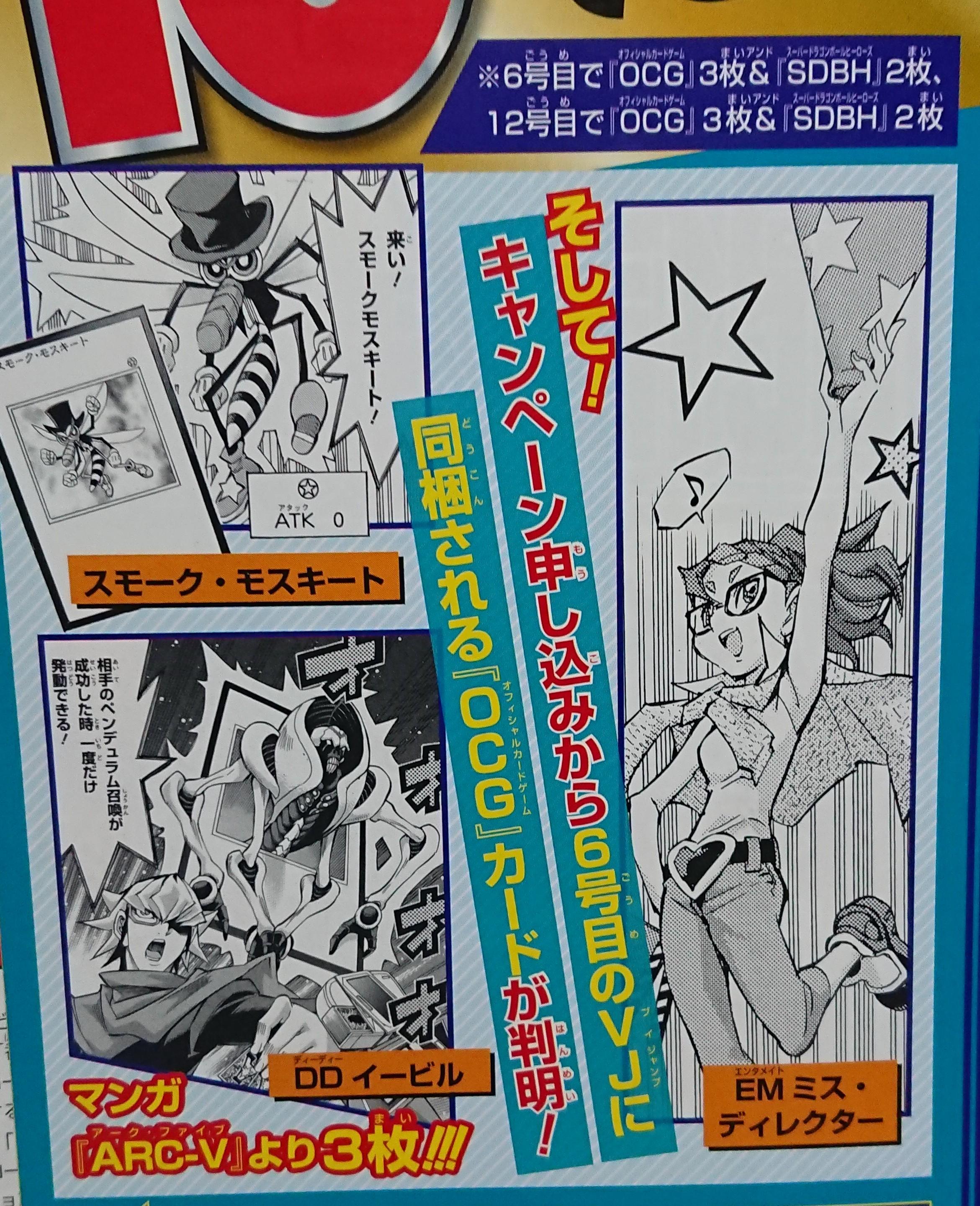 Join our Discord to discuss this article with fellow Duelists Become a Patron to support us for 12 years of all-volunteer work It’s time for big jumbo sets! Subscribe to V Jump in June and December-ish, and you’ll get get 3 Yu-Gi-Oh! promo cards and 2 Super Dragon Ball Heroes promo cards Next issue will reveal the effects of the 3 Promo Cards: Performapal Miss Director Smoke Mosquito D/D Evil