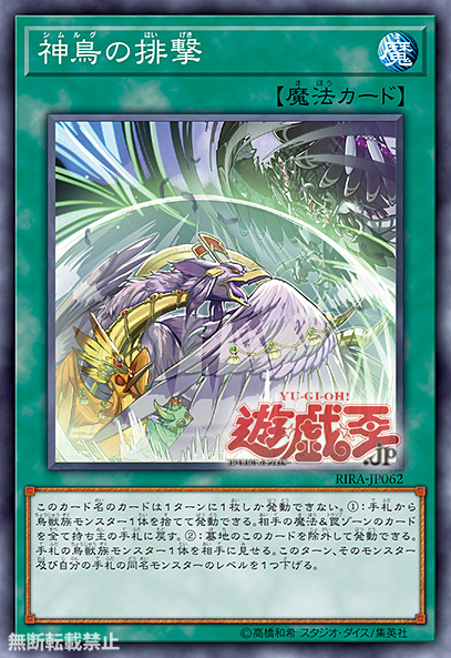 (1) Discard 1 Winged Beast monster; return all cards in your opponent’s Spell & Trap Zones to the hand.