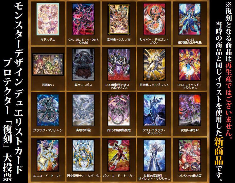 Konami is giving a chance to reprint to reprint two out of over 50 sleeves based off of monsters from throughout the series’ history.