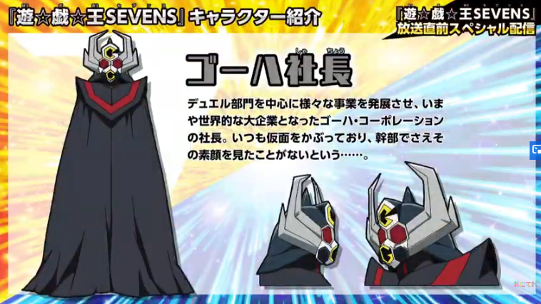 The president/CEO of the worldwide mega corp, Goha Corporation, who has expanded into multiple business fields, including one heavily focused on Dueling. He always wears a mask, and none of his staff, even the topmost executives of the company, have ever seen his face.
