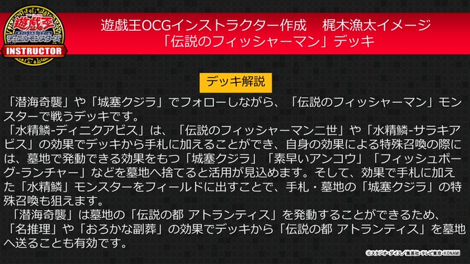 A Deck that fights with “The Legendary Fisherman”, with back-up from “Citadel Whale” and “Sea Stealth Attack”.