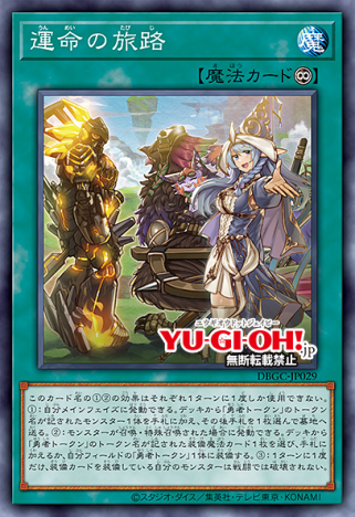 (1) If you control no “Brave Tokens”: Special Summon 1 “Brave Token” (Fairy/EARTH/Level 4/ATK 2000/DEF 2000), then, if you do not control “Journey of Destiny”, you can place 1 “Journey of Destiny” from your Deck face-up in your Spell & Trap Zone.