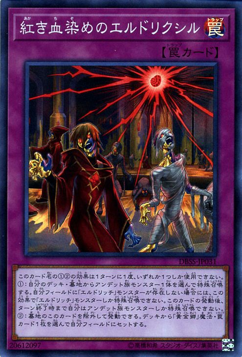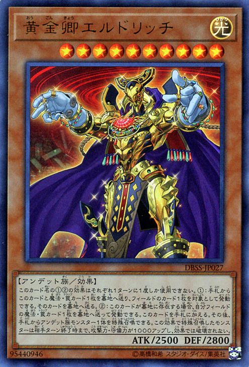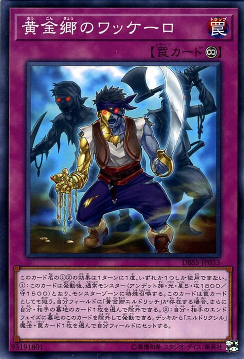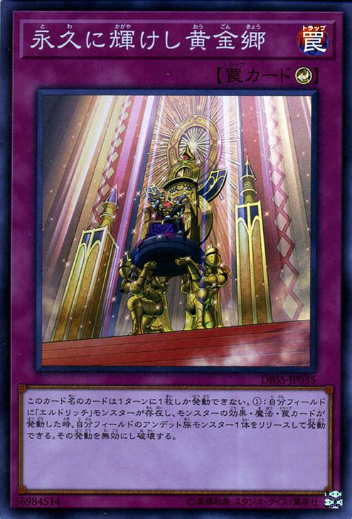 (1) Special Summon this card as a Normal Monster (Zombie/LIGHT/Level 5/ATK 1800/DEF 1500), then, if you control “Eldlich the Golden Lord”, you can banish 1 card from either player’s GY. (This card is also still a Trap.)