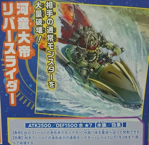 *TL note: While this card’s name is likely based on the fact that the word “kappa” contains the kanji for “river”, the katakana could also be read as “Reverse Rider” or even “Rebirth Rider”. At this point, it’s unclear whether there are multiple puns involved here.
