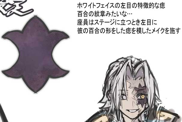 When the members of the clan stand on the stage, they apply make-up mimicking his lily-shaped birthmark.”