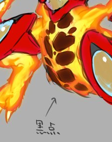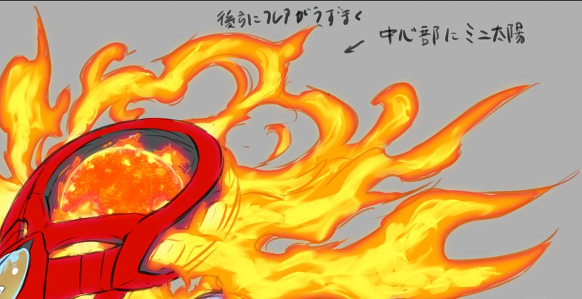 Left: “Flares swirl on its back”