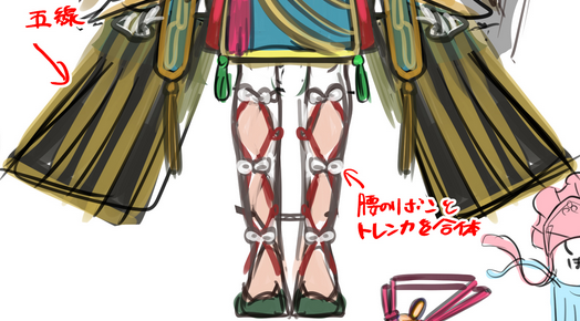Bottom: “Combining the ribbons from the hips and the leggings”