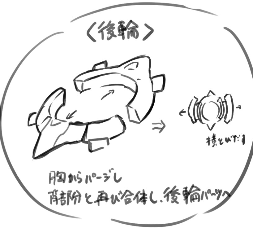 Bottom: “Removed from the torso, combined with the parts on the back once again, becoming parts of the back ring”