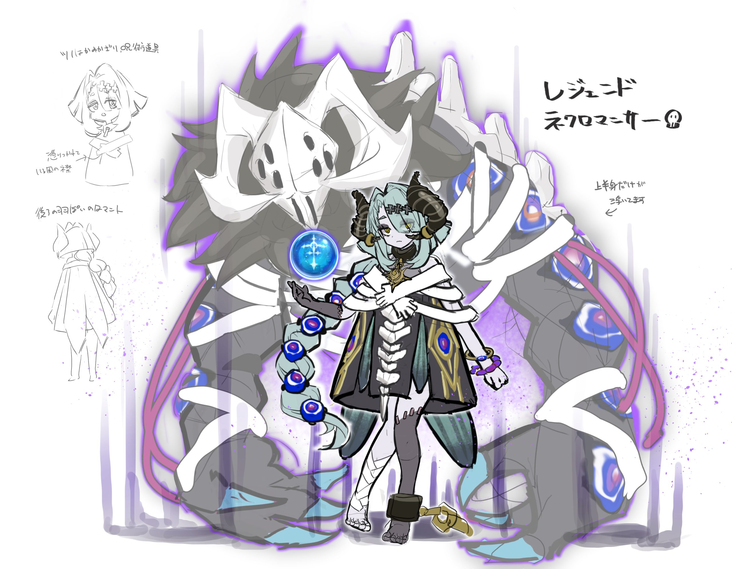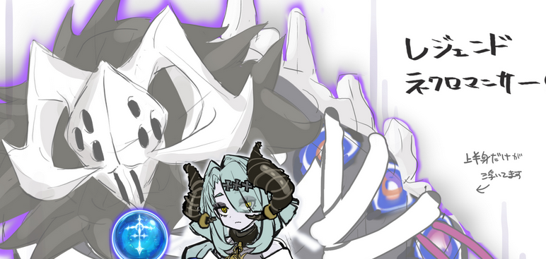 It was thanks to this Concept Art for Legend Necromancer that I realized that the ribbons around her neck literally give the appearance of ghostly hands.