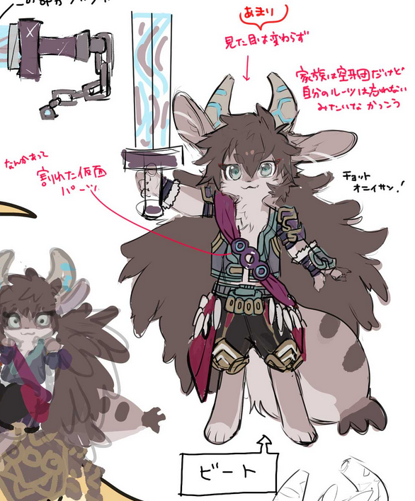 Top right: “His family are the Fur Hire, but his appearance suggests that he doesn’t want to cut the ties to his roots”