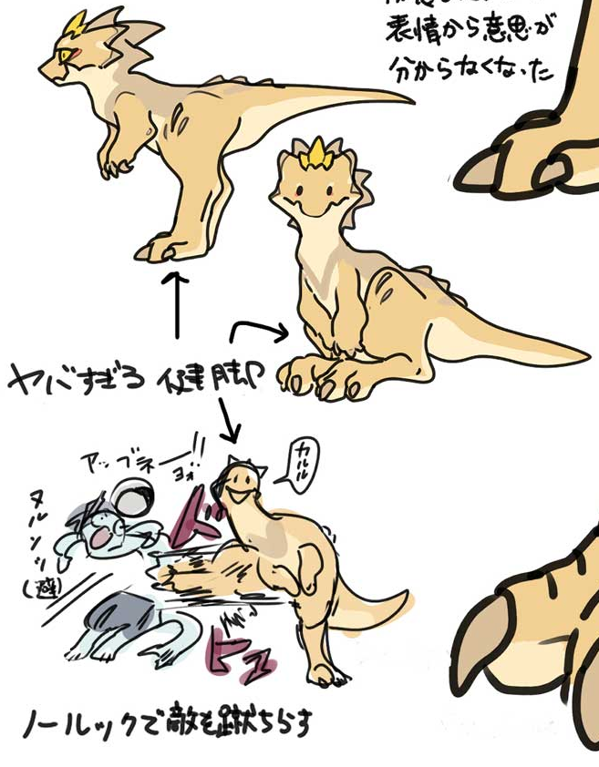 Top: “It became huge in the blink of an eye. The speed in which it grew is completely different from the other humanoids, as if it was part of the Fur Hire”