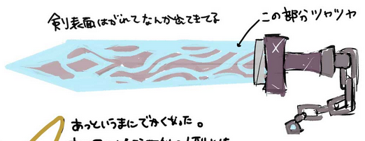 Left: “The surface of the sword has been peeling off and something has appeared”