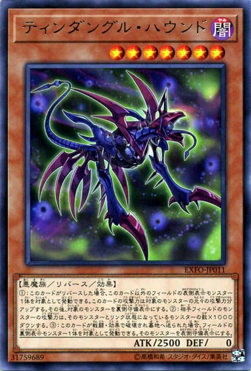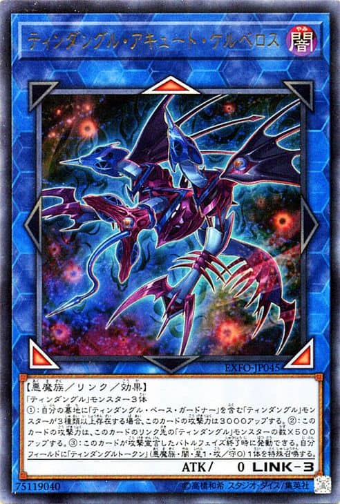 (1) When you take battle damage from your opponent’s attacking monster while 3+ “Tindangle” monsters are in your Graveyard: Destroy the monster that attacked, then Special Summon 1 “Tindangle Acute Cerberus” from your Extra Deck.
