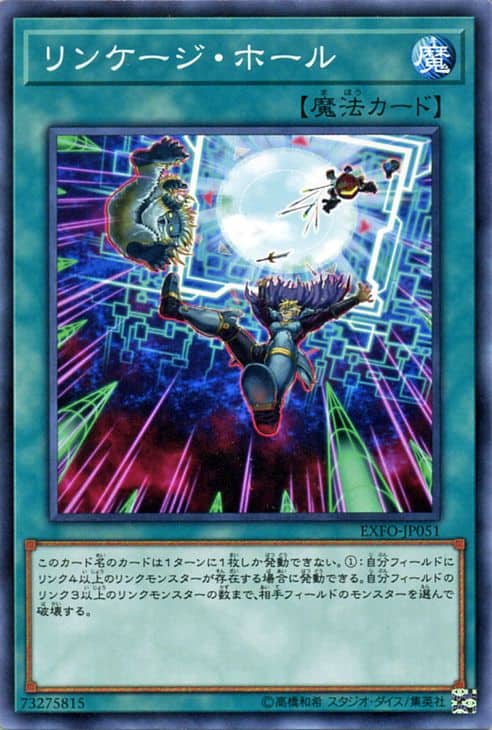 (1) When a Link Monster’s effect is activated that targets this face-up card on the field (Quick Effect): You can destroy this card, then choose 1 monster in the same column as the zone this card occupied, and if you do, destroy it, and if you do that, destroy all monsters occupying zones (horizontally) adjacent to the zone that chosen destroyed monster occupied (if any).