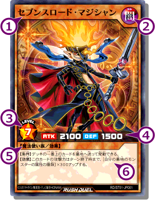 Rush Duels use 3 types of cards: Monsters, Spells, and Traps.