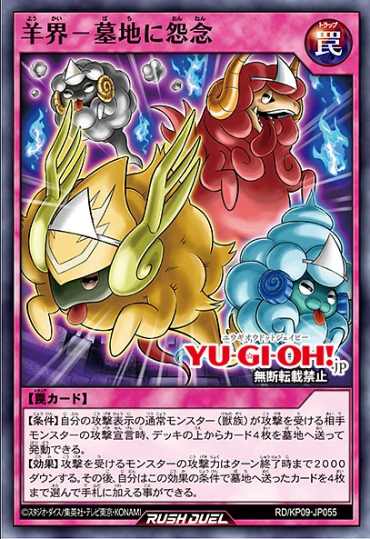 [Effect] Choose 1 “Meet and Greed” or “Ewekai – Grudges from the Grave” in your Graveyard and Set it to your Spell & Trap Zone. Then, if you control a face-up “Magical Sheep Girl Meeeg-Chan”, you can gain (6?)00 LP.
