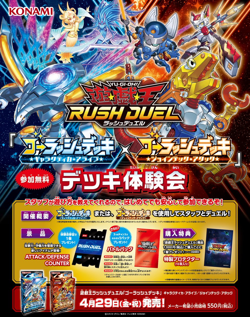 Konami will be running a Deck Experience Event for the Go Rush!! Decks for Yudias and Yuhi, on April 9th, 2022, throughout Japan.