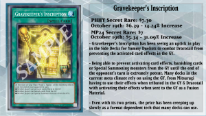 Overall, Gravekeeper’s Inscription is still a useful tech for many Decks that can utilize it fully if they don’t rely on the GY and can make room for it in their side decks.