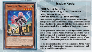 Players have been picking up Exosister cards since they received two amazing support cards in Burst Protocol. On the first of the two stops we have with Exosister, Exosister Martha is a major part of the Deck for many, as if you control no monsters or only Xyz Monsters, she can Special Summon herself from your hand, and if you do, you can Special Summon a copy of Exosister Elis from your Deck, while locking you into only being able to Special Summon Exosister monsters for that turn. She shares the effect that all Main Deck Exosister monsters have the moment a card leaves the GY, which lets you Xyz Summon 1 Exosister Xyz Monster by using that face-up Exosister card as material. This can help to Xyz Summon more monsters as material for Exosisters Magnifica during the opponent’s turn. As a refresher, the new Exosister Karmael (YGOrganization Translation) comes with a great replacement effect that changes your opponent’s activated effect to “Add 1 card from your opponent’s GY to their hand,” and Exosister Bat Mater (YGOrganization Translation) is an amazing starter that adds 2 Exosister monsters from the Deck to the hand, then makes you discard 1 card.
