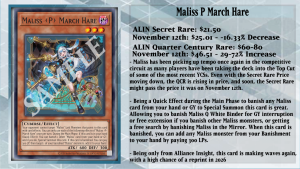 Next up are a couple meta-relevant cards like Maliss <P> March Hare, as many players have been jumping back to play this Cyberse Link Deck. Only from Alliance Insight, this Secret Rare has been a key extender for many of the combo lines for the deck. By banishing 1 Maliss card from your hand or GY, you can Special Summon Hare from your hand, which triggers many of your Maliss cards, from the monsters that Special Summon themselves to even Maliss in the Mirror to banish another Maliss card from your GY and add another card of the same type (Monster/Spell/Trap). When Hare is banished, you can pay 300 LP to target 1 of your banished Maliss monsters and add it to your hand, which recurs a banished Maliss <P> Dormouse or a Link Monster that is stuck in banishment if you don’t have access to Maliss <C> GWC-06.