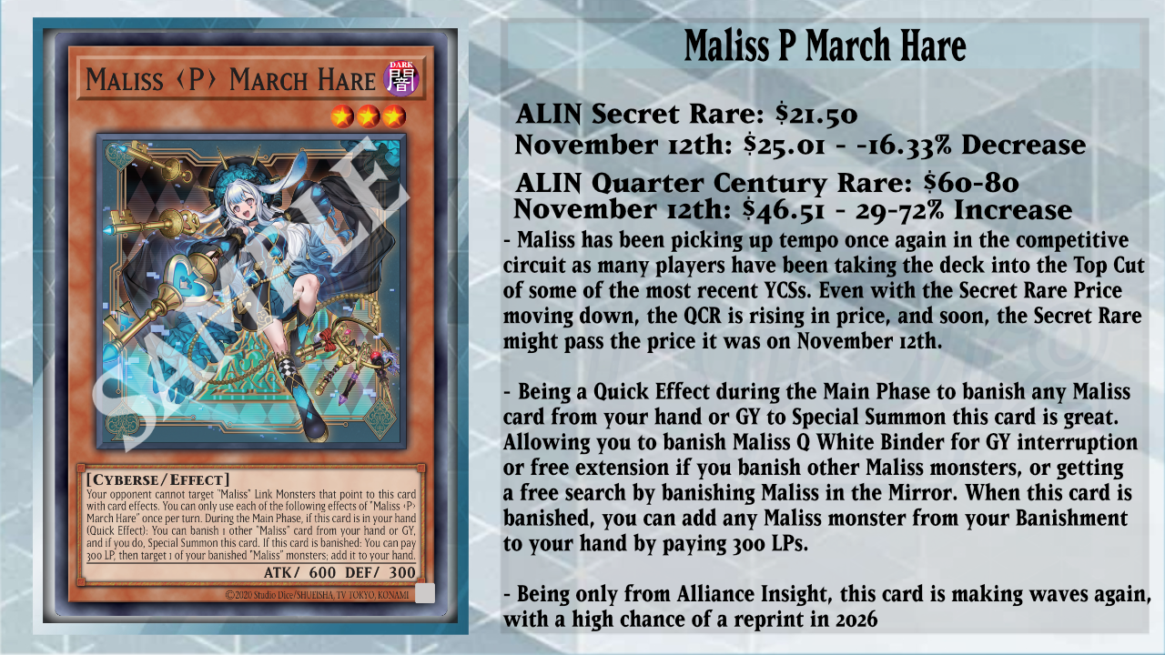 Despite being in Rage of the Abyss and the 2025 Mega Tins, this card’s value has been rising with the return of Maliss to the current meta as a potential deck in the top 5 in the format. Maybe we will see an additional reprint that will be extremely easy for players to have access to, but only time will tell.
