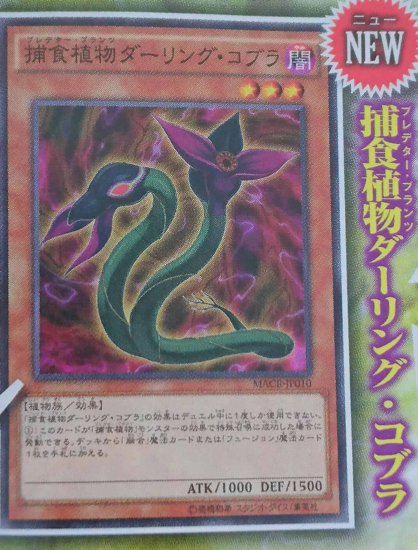 (1) If this card is Special Summoned by the effect of a “Predaplant” monster: You can add 1 “Polymerization” Spell Card or “Fusion” Spell Card (except “Diffusion Wave Motion) from your Deck to your hand. You can only use this effect of “Predaplant Darling Cobra” once per Duel.