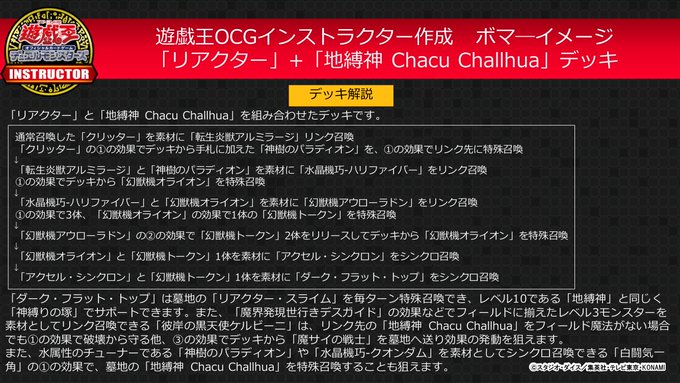 A Deck that combines “Reactors” with “Earthbound Immortal Chacu Challhua”.
