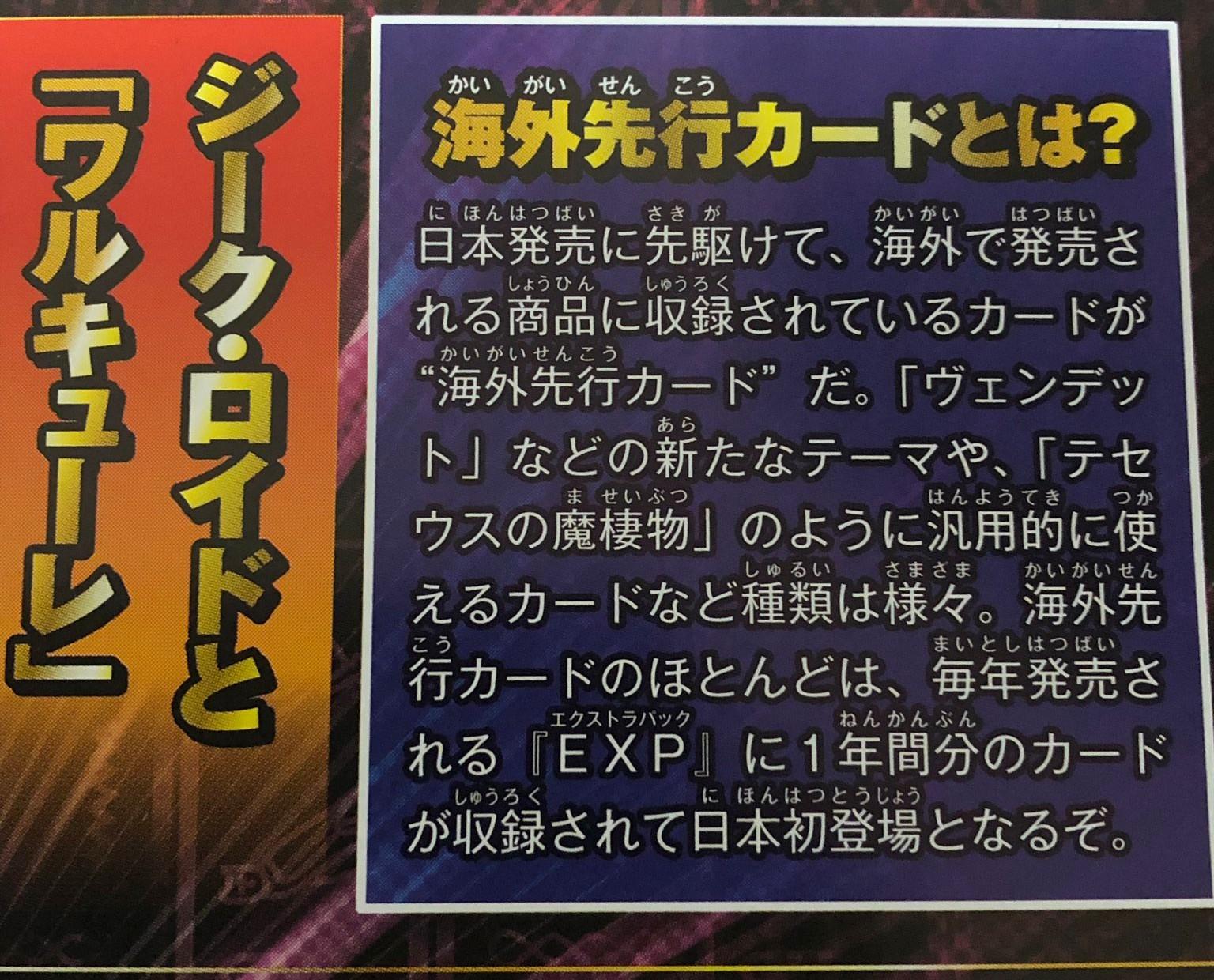 That are various cards that are released overseas (i.e. internationally outside of Japan and affiliated Asian territories) , such as new themes like the “Vendread” theme, as well as “Sea Monster of Theseus”. Every year, these various “Overseas Fist” cards are rounded up in an “Extra Pack” to release them to OCG customers.