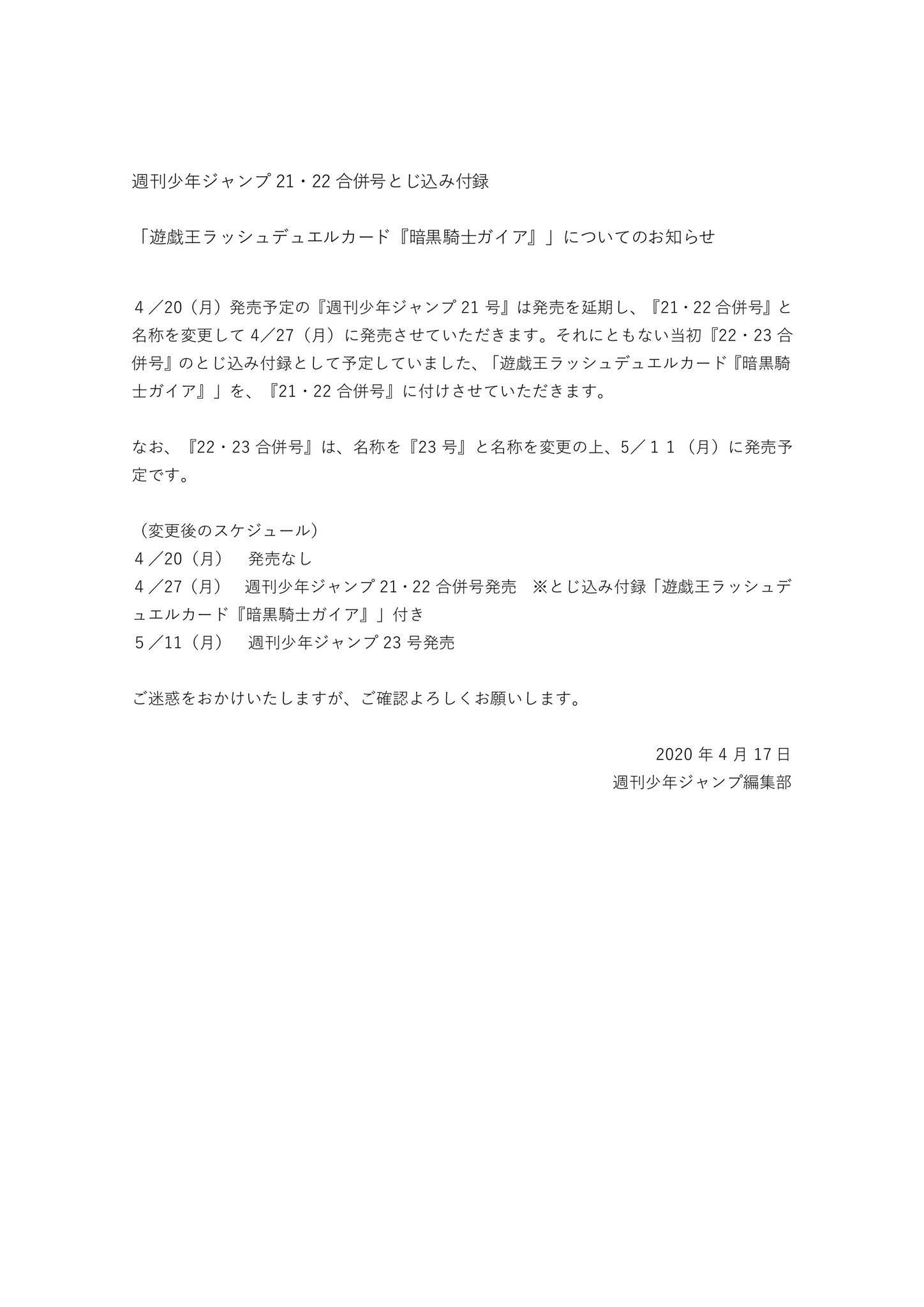 To note, this card was intended for the 22nd-23rd Merged Issue, but will be released in the 21st-22nd Merged Issue out on April 27th instead due to Jump having cancelled its issue from last week due to the virus.