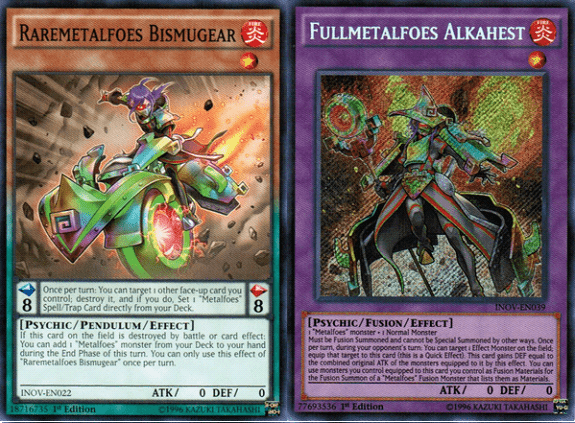 After the first weeks people more and more started playing 2 instead of only 1 Fullmetalfoes Fusion. The reason were some interactions you could have during your opponents turn including your Mithrilium. With a hand of 4 Metalfoes monsters, where one of them is Bismugear and at least one is a low Scale you could Pendulum summon, fuse for Mithrilum and in an optimal scenario end with 2 Fullmetalfoes Fusion + Combination face down. In your end Phase you would get to search another Metalfoes monster. During your opponents turn you can use the first Fullmetalfoes Fusion to summon Orichalc while Mithrilium summons any Metalfoes from your Graveyard or Extra Deck and Combination revives the Mithrilium you just fused. The second Fusion afterwards can make sure you can use your Orichalc’s destruction effect whenever you want and also summon any Metalfoes monster you like (usually Alkahest to disrupt your opponents turn even more).