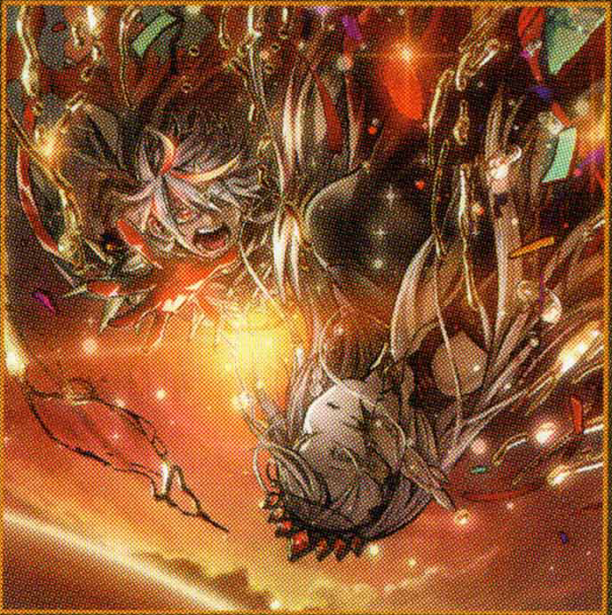 Albaz’s desperate resolves saves Ecclesia, who had transformed into the “Holy Maiden of Red” as a result of the Despian’s scheme. When they joined their hands, the Dragon of True Flames appeared and scorched the Despians away. It was at that moment that their consciousness saw an inexplicable scene.