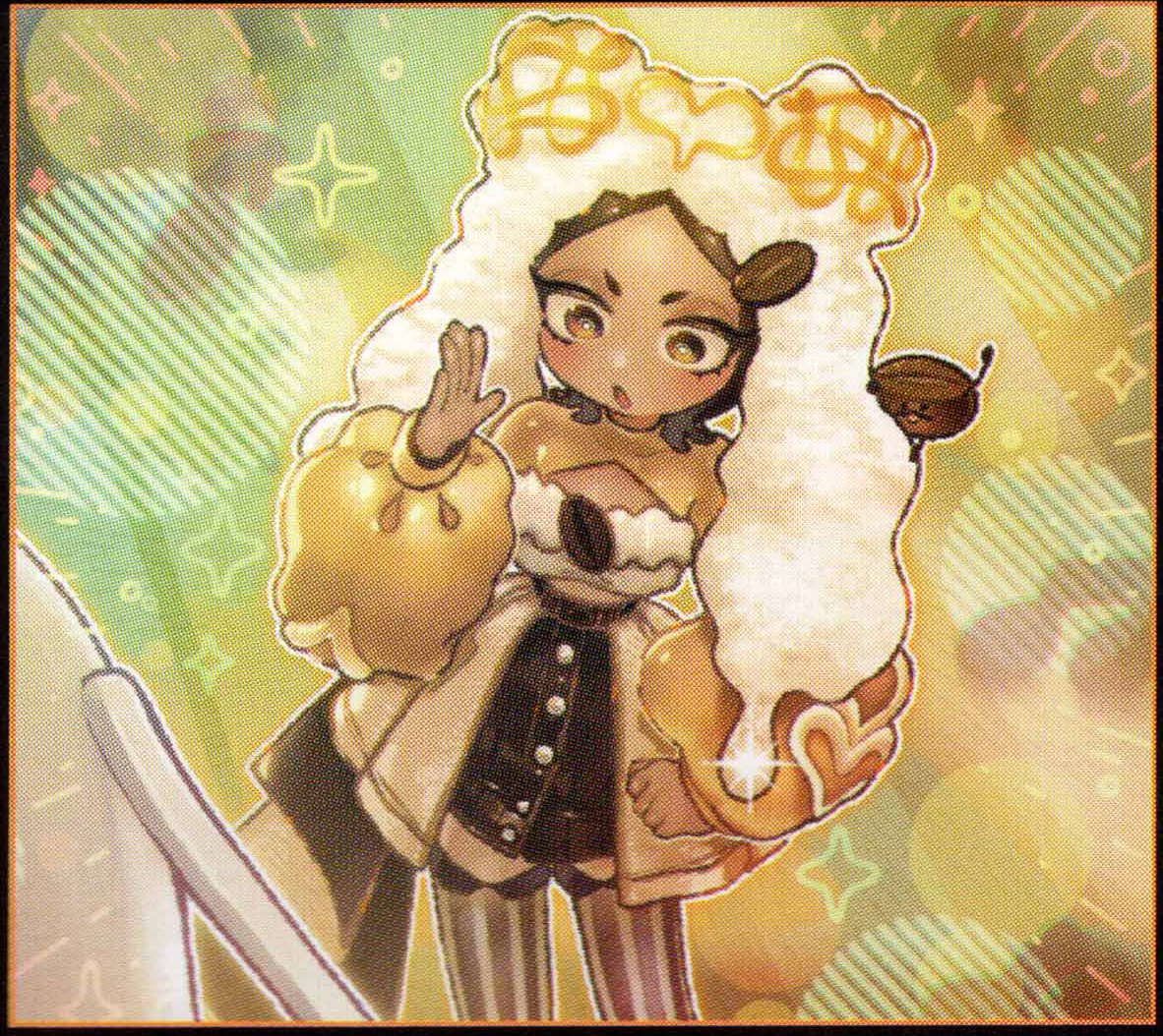 -Mameusa seems to be a name for the (coffee) bean rabbit mascot, which is present in her reference art, previously noted as “Mameusagi”.
